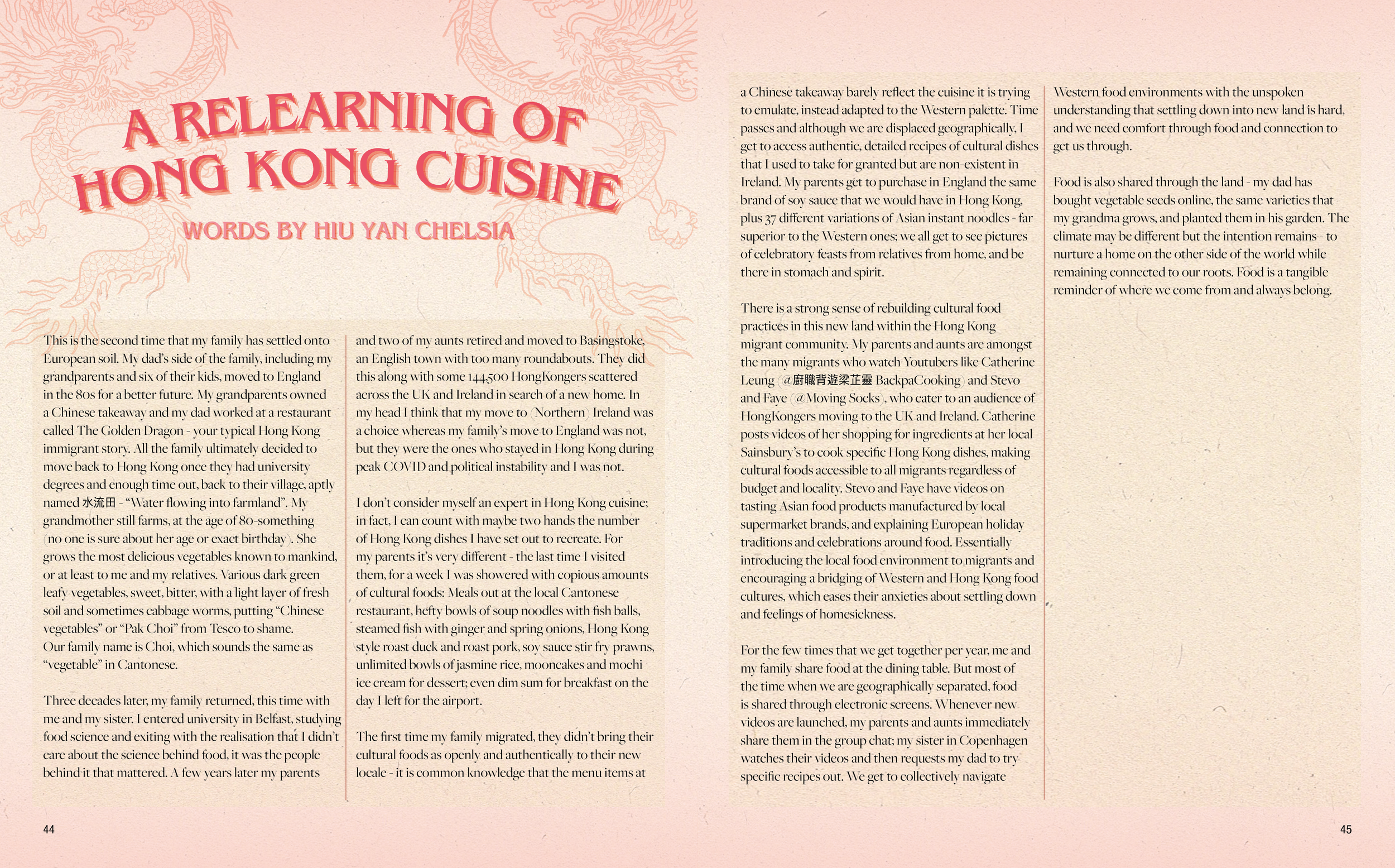 Three decades later, my family returned, this time with me and my sister. I entered university in Belfast, studying food science and exiting with the realisation that I didn’t care about the science behind food, it was the people behind it that mattered. A few years later my parents and two of my aunts retired and moved to Basingstoke, an English town with too many roundabouts. They did this along with some 144,500 HongKongers scattered across the UK and Ireland in search of a new home. In my head I think that my move to (Northern) Ireland was a choice whereas my family’s move to England was not, but they were the ones who stayed in Hong Kong during peak COVID and political instability and I was not.